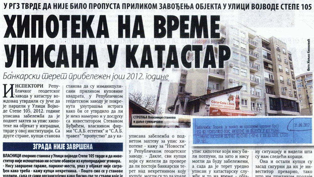 Хипотека на време уписана у катастар