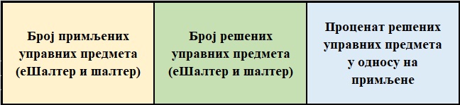 Табела мерења поступања као основу поново узима месечни прилив предмета у службе катастра непокретности, а исказује обим оптерећења оних службеника који непосредно решавају предмете. У добијеном проценту се налазе сви решени предмети, сви предмети по којима се није могло донети решење због претходног захтева а које су службеници морали да прегледају, као и сви предмети из претходних месеци који су узети у рад у текућем месецу. Проценат преко 100% говори о периоду у којем долази до смањења укупног броја предмета за рад. У супротном, уочава се период у коме је дошло до стагнације (нпр. периоди годишњих одмора, штрајка…) и по потреби предузимају корективне мере.